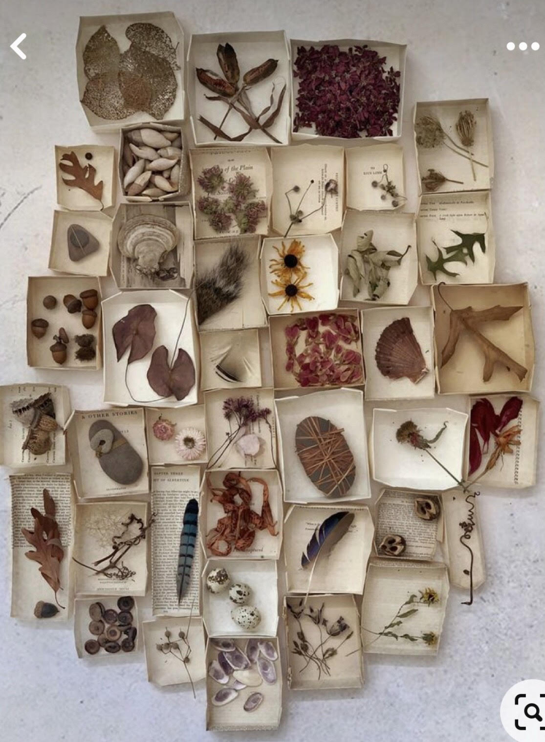 13 maart is er een Knutselworkshop (op de flyer staat Quilten) door: Dominique Almeida i.s.m. Harriet. Zij zullen met de groep doosjes gaan maken. Zie foto! Wees welkom en creëer je eigen kunstwerk van de natuur!
